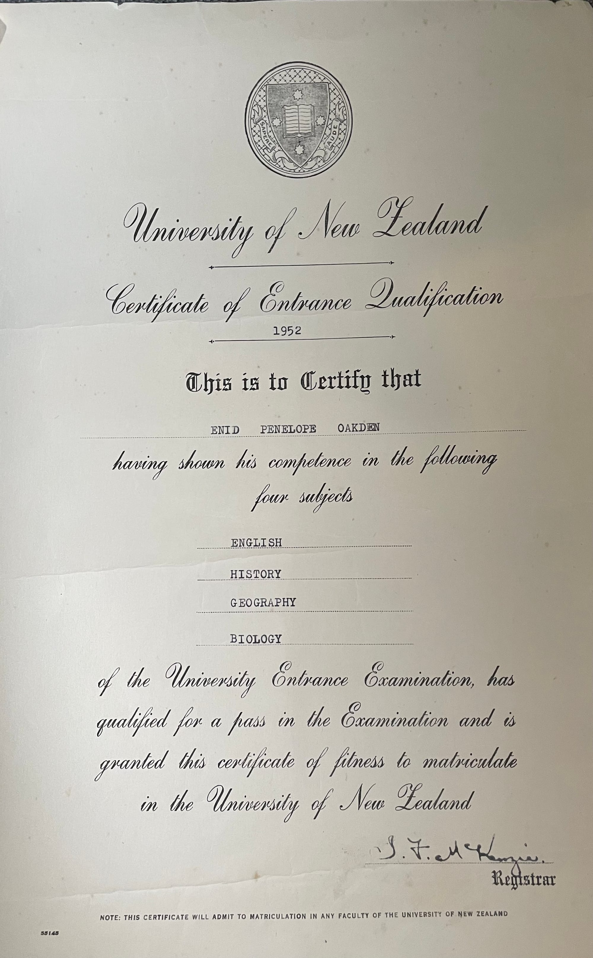 I want to show you her UE certificate. Having shown his competence.