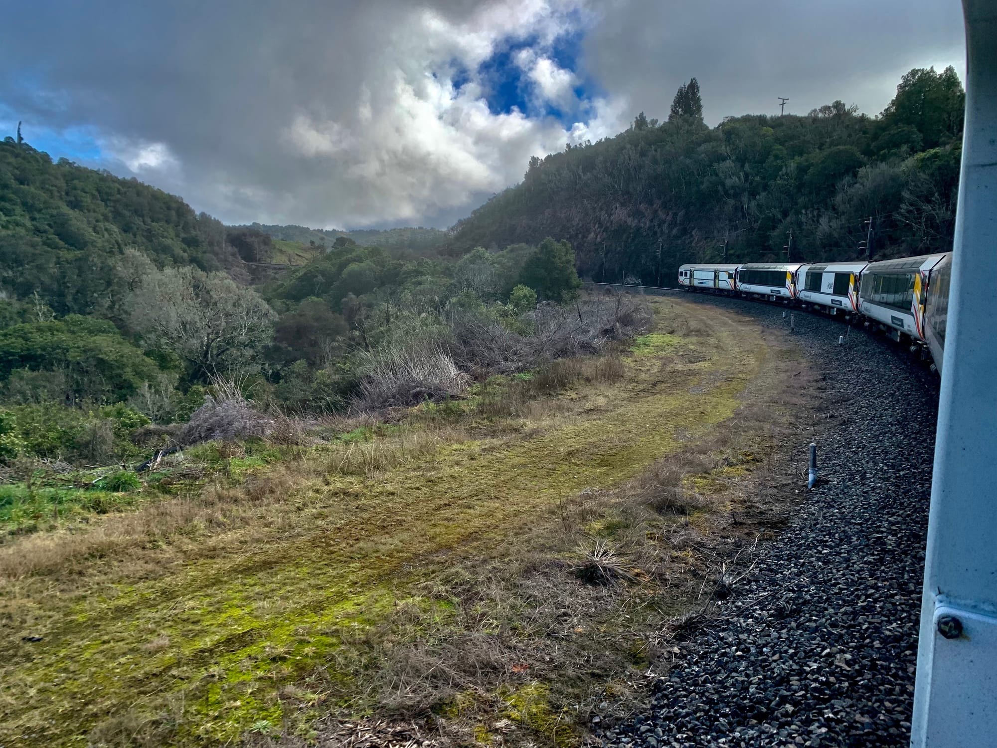 Third thought: Amtrak viewing cars are very cool and all and they give you a magnificent picture window but the Northern Explorer, man its viewing car is a different and wilder and better beast. It’s an open carriage, with safety bars, no windows, no seats and it is VISCERAL. The wind flies through you and your feet feel all the jolts and vibrations and when you plunge into the tunnel you breathe the damp clammy air and this is altogether faithful to the concept of Aotearoa adventure tourism.