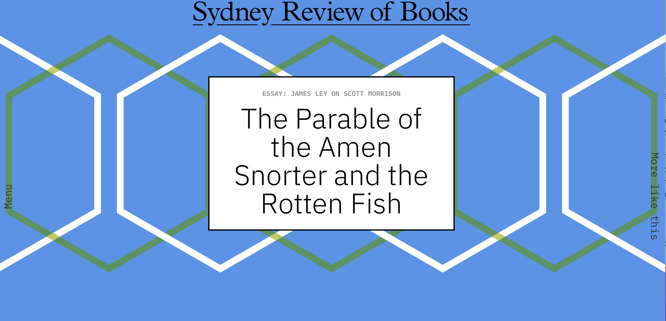 Here's some deeply satisfying work by James Ley about Australia’s absolute charlatan of a Prime Minister. Every line is a gem, here’s a taste.