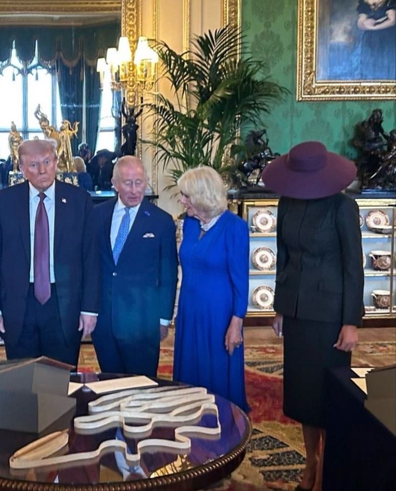 c. Standing next to Camilla in a hat that made him look like a standard lamp