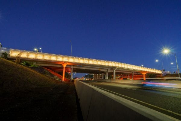 This is the missing link to 5km of cycle path that takes you all the way from Smales Farm to the Northcote Ferry terminal: a pair of bridges to get you over the motorway.